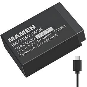 Alimente sua câmera canon rebel e mirrorless com praticidade e segurança usando a bateria mamen lp-e17 usb-c, compatível com todos os modelos que utilizam bateria canon lp-e17. Totalmente decodificada, ela garante desempenho confiável e funcionamento perfeito, sem mensagens de erro em sua câmera canon eos.Este bateria mamen lp-e17 usb-c para câmeras canon possui capacidade de 1050mah 7.56wh e saída de 7.2v, esta bateria oferece energia estável para longas sessões de foto e vídeo. Seu grande diferencial é a entrada usb-c integrada, que permite carregamento rápido e conveniente diretamente via carregadores de parede, veiculares ou power banks com entrada usb-a. Se preferir, você também pode carregá-la em carregadores canon lp-e17 externos ou de qualquer marca.Além da versatilidade, a bateria lp-e17 mamen usb-c conta com conectores banhados a ouro para maior durabilidade e sistema de proteção inteligente contra sobrecarga, superaquecimento e curto-circuito - garantindo mais segurança para o seu equipamento canon. Principais características: Acompanha cabo usb-a para usb-c Conectores precisos e banhados a ouro para bateria canon lp-e17 Totalmente decodificada e pronta para uso Capacidade 1050mah 7.56wh e saída de 7.2v Carregamento via usb-c ou carregador externo lp-e17 Para câmeras canon eos rebel e mirrorless selecionadas Proteção contra sobrecarga, superaquecimento e curto-circuito Pode ser carregada em qualquer fonte usb carregador padrão, veicular ou power bank câmeras canon compatíveis: eos 77d, rebel t8i, t7i, t6i, t6s, sl3, sl2, mirrorless eos rp, r8, r10, r50, r100, m3, m5, m6, m6 mark iientre outras câmeras canon rebel e mirrorless que utilizam bateria canon lp-e17.