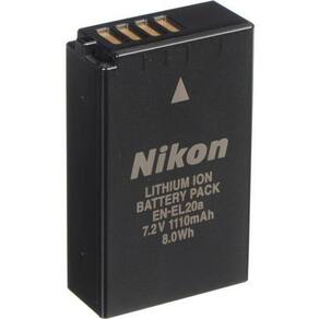 Bateria nikon en-el20a A bateria de íon de lítio recarregável en-el20a da nikon é uma bateria de 7,2 v sobressalente ou substituta com capacidade de 1110 mah para a câmera digital sem espelho nikon 1 v3. As baterias de íons de lítio são fontes de energia de longa duração que podem ser carregadas ou descarregadas continuamente sem desenvolver efeito de memória. Pode ser carregado com o carregador de bateria mh-29.