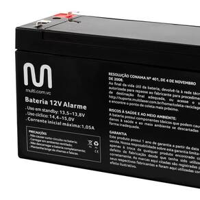 Bateria Para Alarme Multi En011a 12v 4ah Descricao Construcao robusta, evitando vazamento de eletrolito;Seguranca para que a bateria possa operar sem risco, em diversas situacoes;Mantas de fibra de vidro que separam as placas que absorvem o eletrolito;Estabilidade e maxima confiabilidade;Operacao livre de manutencao;Rapida capacidade de recuperacao e aceitacao de carga, mesmo apos descargas profundas.Aplicacoes: Iluminacao de emergencia, Cercas eletrificadas, Fontes de alimentacao DC, Centrais de alarme.*Imagens meramente ilustrativas.Especificacao Tecnica Positivo: Dioxido de chumboEletrolito: Acido sulfuricoSeparador: Fibra de vidroRecipiente: ABS (UL94-HB) | ABS retardante a chamas (UL94-V0)Negativo: ChumboValvula de seguranca: EPDRTerminal: Cobre Descricao Construcao robusta, evitando vazamento de eletrolito;Seguranca para que a bateria possa operar sem risco, em diversas situacoes;Mantas de fibra de vidro que separam as placas que absorvem o eletrolito;Estabilidade e maxima confiabilidade;Operacao livre de manutencao;Rapida capacidade de recuperacao e aceitacao de carga, mesmo apos descargas profundas.Aplicacoes: Iluminacao de emergencia, Cercas eletrificadas, Fontes de alimentacao DC, Centrais de alarme.*Imagens meramente ilustrativas.Especificacao Tecnica Positivo: Dioxido de chumboEletrolito: Acido sulfuricoSeparador: Fibra de vidroRecipiente: ABS (UL94-HB) | ABS retardante a chamas (UL94-V0)Negativo: ChumboValvula de seguranca: EPDRTerminal: Cobre