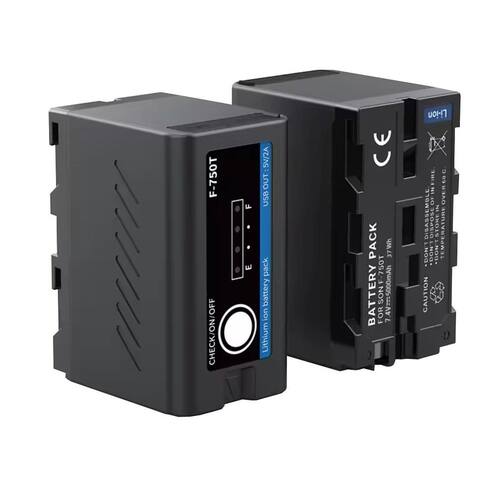 Bateria recarregável np-f750t com power bank para iluminadores e filmadoras a bateria np-f750t é uma bateria de substituição para as baterias np-f750, f730, f770, entre outras. A bateria np-f750t