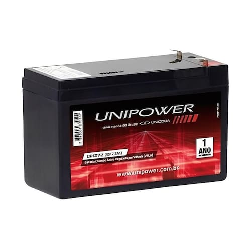 O aumento de equipamentos que requerem bateria está crescendo cada vez mais, por isso, a Bateria Selada Vrla 12v 7,2ah F187 Up1272 foi produzida para suprir essa necessidade. Ela pode ser utilizada em sistemas de alarmes, brinquedos elétricos, nobreaks (UPS), energia solar e eólica, telecomunicações, PABX, cerca elétrica, equipamentos médicos, iluminação de emergência, balanças, relógios de ponto, rastreadores, elevadores etc. Sua Válvula VRLA (Valve Regulated Lead Acid), placa de chumbo ácido regulada por válvula e selada, controla automaticamente a pressão interna dos gases impedindo a emissão de vapores ácidos. Já o separador AGM garante a retenção do eletrólito, possibilitando seu uso em várias posições.