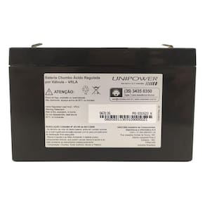 Bateria Selada VRLA 6V 7,2Ah UP672 Unipower Com o aumento de equipamentos que precisam de bateria para o seu funcionamento, a Bateria Selada VRLA 6V 7,2Ah UP67 é o a melhor opção para mantê-los funcionando com qualidade e maior durabilidade.