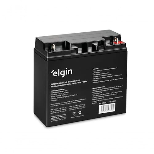 A Bateria Selada VRLA Elgin 12V 18Ah é indicada para nobreaks, alarmes e outros sistemas que exigem alimentação confiável. Com tecnologia VRLA/AGM e chumbo-ácido regulado por válvula, oferece desempenho estável e baixa necessidade de manutenção. Seus terminais FAST ON tipo L1 facilitam o engate rápido, contribuindo para uma instalação prática e segura. Pode ser utilizada em centrais de alarme, no-breaks, sistemas de iluminação de emergência, telecom, automação industrial, elevadores e outros equipamentos compatíveis. A Elgin é uma marca reconhecida no segmento, com rigorosos padrões de qualidade e garantia de 3 anos para este produto.