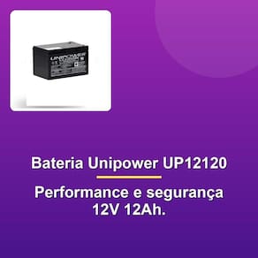 A Bateria Unipower UP12120 12V 12Ah F250 é a escolha ideal para quem busca desempenho confiável e durabilidade em aplicações não automotivas. Desenvolvida com tecnologia de ponta, esta bateria de chumbo-ácida selada é regulada por válvula, garantindo segurança, eficiência e praticidade no uso. Seu design compacto e bem projetado, com dimensões de 151 mm de comprimento, 98 mm de largura e 100 mm de altura com terminal, facilita a instalação em diferentes equipamentos e sistemas. Além disso, o peso de 3,70kg assegura estabilidade e resistência.