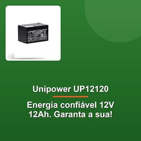 A Bateria Unipower UP12120 12V 12Ah F250 é a escolha ideal para quem busca desempenho confiável e durabilidade em aplicações não automotivas. Desenvolvida com tecnologia de ponta, esta bateria de chumbo-ácida selada é regulada por válvula, garantindo segurança, eficiência e praticidade no uso. Seu design compacto e bem projetado, com dimensões de 151 mm de comprimento, 98 mm de largura e 100 mm de altura com terminal, facilita a instalação em diferentes equipamentos e sistemas. Além disso, o peso de 3,70kg assegura estabilidade e resistência.