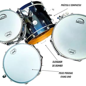 Uma característica única desta bateria são as peles porosas Evans Uno, que oferecem um controle sonoro adicional ao kit. Além disso, o elevador de bumbo e os clamps incluídos permitem que você posicione os componentes da bateria de acordo com suas preferências e estilo de tocar.