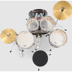 O kit conta com bumbo de 16", tons de 10" e 12", surdo de 13" e caixa de 12".