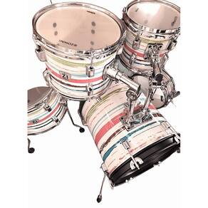 A configuração da Zowag Z1 White Funny inclui bumbo de 16", tons de 10" e 12", surdo de 13" e caixa de 12".