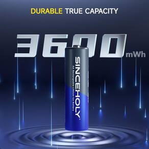 Maior capacidade - Atualmente, a bateria recarregável AA de 1,5 V de maior capacidade do mercado é de 3600 mWh. As baterias SINCEHOY são feitas para dispositivos de alto consumo de energia