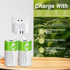 letoom Baterias C recarregáveis com cabo USB 4 em 1 pacote com 8 pilhas de lítio tamanho C LR14 5000mWh 1,5V Li-ion Power para uso duradouro em holofotes - Carregamento USB-C inteligente: aproveite o carregamento sem complicações com o cabo USB-C 4 em 1 incluído. Recarregue totalmente essas baterias C em apenas 2 horas, deixando-as prontas para uso imediato. - Reutilização ecológica: Estas baterias de lítio tipo C possuem impressionantes ciclos de recarga de mais de 1000, reduzindo significativamente o desperdício e economizando dinheiro em comparação com as baterias alcalinas de uso único. - Indicador de carregamento LED: Monitore o status de carregamento com facilidade graças ao indicador LED. Ela brilha em vermelho durante o carregamento e fica verde quando totalmente carregada, garantindo que você sempre saiba o status das baterias C. - Recursos avançados de segurança: equipadas com um circuito de segurança embutido, essas baterias recarregáveis de lítio C são protegidas contra descarga excessiva e sobrecarga. Desligamento automático após carga total para tranquilidade. - Escolha ecológica com estas baterias de célula C de lítio sem mercúrio, cádmio e grafite. Elas são uma alternativa sustentável às baterias descartáveis, ajudando a minimizar o impacto ambiental.