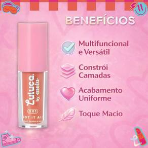 Benefícios PrincipaisO Batom, Blush e Sombra 3x1 Luluca By Melu Got It All Get Ready é perfeito para o dia a dia, proporcionando retoques rápidos e práticos em qualquer lugar. Ideal para criar maquiagens completas para eventos especiais, sua versatilidade permite que você esteja sempre pronta, seja para um look casual ou algo mais elaborado, aplicando nas bochechas, lábios ou pálpebras.
