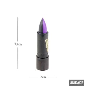 Batom Cremoso 3,5g Halloween Duplo Roxo/preto Transforme seu visual de Halloween com o Batom Cremoso Duplo Roxo/Preto, a escolha perfeita para quem deseja um toque ousado e sofisticado em sua maquiagem. Este batom combina duas cores intensas em uma única embalagem, permitindo criar efeitos de maquiagem dramáticos e personalizados para a temporada de festas e eventos temáticos.\nSua fórmula cremosa desliza suavemente sobre os lábios, proporcionando uma aplicação uniforme e confortável. Ideal para quem busca um acabamento sofisticado e duradouro. A embalagem prática permite uma aplicação precisa e fácil, garantindo que você obtenha o efeito desejado com cada uso.\nContém: 3,5g. Produto não tóxico, uso externo.\nEspecificações:\nMarca : LARY\nTipo de material : Cera, Copemicina, Óleo\nCores ou Estampa : Roxo, Preto\nDimensões do Produto : 7,5 X 2 X 2 CM\nDimensões da Embalagem : 7,5 X 2 X 2 CM\nPeso Bruto (Gramas) : 0.012