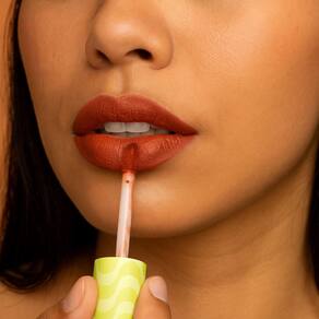 Aplique uma camada fina do Batom Líquido Melu começando pelo centro dos lábios e espalhando para as extremidades.