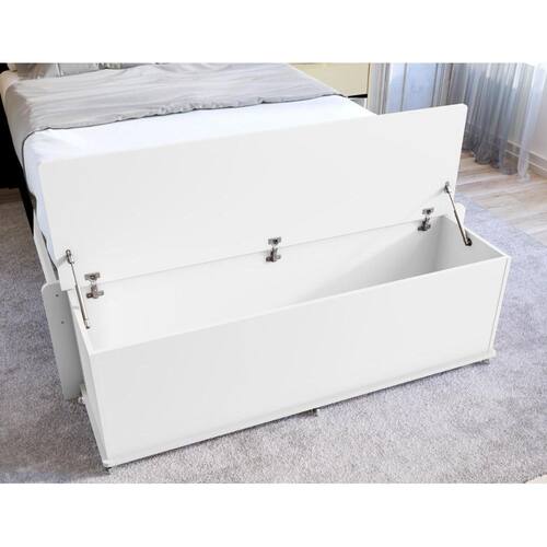 O Baú banco Elena é um produto para quem procura um design bonito e utilidade na organização de espaços Ideal para guardar brinquedos, sapatos, e artigos de cama. Além da utilidade apresentada, ele é de fácil movimentação, possui seis rodízios para ser movimentado para onde quiser. A porta é segura, conta com dois pistões reforçados para que não feche enquanto aberto. Tampo superior e inferior em MDF 15mm usinado com cantos arredondados. Tampo exclusivo com design frisado, exclusividade Casa D.
