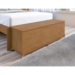 O Baú banco Elena é um produto para quem procura um design bonito e utilidade na organização de espaços Ideal para guardar brinquedos, sapatos, e artigos de cama. Além da utilidade apresentada, ele é de fácil movimentação, possui seis rodízios para ser movimentado para onde quiser. A porta é segura, conta com dois pistões reforçados para que não feche enquanto aberto. Tampo superior e inferior em MDF 15mm usinado com cantos arredondados. Tampo exclusivo com design frisado, exclusividade Casa D.