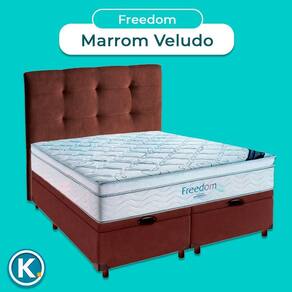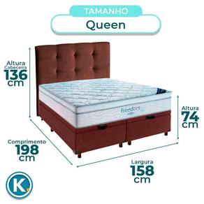Modelo: Elite Marca: Nature Tamanho: Queen Tecido: Veludo Largura: 158cm Comprimento: 198cm Altura: 35cm Altura dos Pés: 7cm Material dos Pés: Madeira Suporte de Peso: 150Kg Peso: 40Kg Garantia: 3 Meses