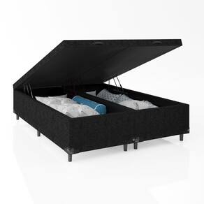 Baú Box Casal Bipartido - Suede Preto