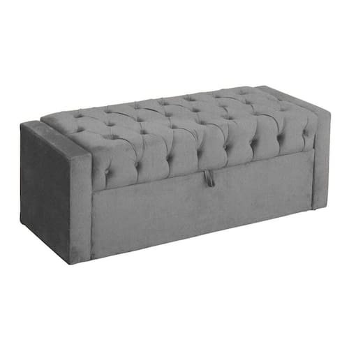 Báu Calçadeira Emma 160cm Suede Cinza - Vallisa Decor