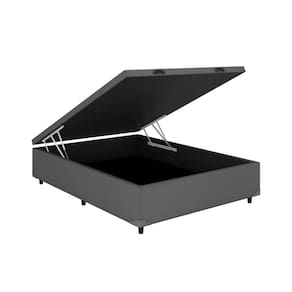 Base Cama Box Baú Casal (138x188) Corino. Ideal para quem busca boas noites de sono e modernidade para o quarto. Feita com madeira reforçada 100% de reflorestamento, acabamento em tecido Corino, tratamento antialérgico e antiácaro, laterais fechadas.