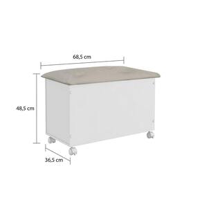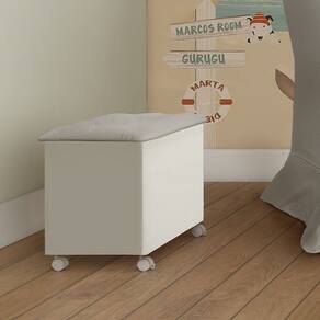 Peso (kg): 11.83 Garantia: 03 Meses Altura (cm): 49 Descrição: Com amplo espaço interno o Baú Elô possui estrutura 100% MDF, acabamento em pintura UV, tampo com estofamento capitonê em tecido corino ou suede, 04 rodízios (sendo 02 com travas) e abertura feita por pistão a gás e dobradiças metálicas. Perfeito para compor o quartinho do seu bebê. Estampado: Não Acabamento: Pintura Texturizada UV Largura (cm): 69 Possui Pés: Não Possui Portas: Não Altura dos Pés: 6 Pés Reguláveis: Não Possui Encosto: Não Possui Gavetas: Não Suporta Até (kg): 25 Possui Espelhos: Não Possui Rodízios: 04 Profundidade (cm): 37 Escala de Brilho: Semi-Brilho Material dos Pés: Plástico Origem do Produto: Nacional Rodízio com Trava: Sim Material Principal: MDF Necessita Montagem: Sim Possui Prateleiras: Não Sapatas Niveladoras: Não Tampo com Enchimento: Não Resistente à Luz Solar: Não Tampo com Revestimento: Sim Complexidade da Montagem: Baixa: pode ser montado por uma pessoa sozinha Possui Divisórias Internas: Não Tecido do Revestimento do Tampo: Corino Tampo Pode ser Utilizada como Assento?: Não Recomendações de Uso, Manutenção e Limpeza: Para limpeza utilizar somente pano limpo e macio, ligeiramente umedecido em água (apenas o bastante para remover a poeira), seguido de um pano seco. Marca: Móveis Peroba Composição: MDF e tampo estofado. Cor do Produto: Branco Brilho/Corino Bege Itens Inclusos: 1 Baú, Kit de Ferragens e Manual de Montagem Linha ou Coleção: Elô Sistema de Montagem: Parafusos autoatarraxantes, conjuntos minifix, cavilhas de madeira, acessórios plásticos e metálicos Informações Complementares: Pintura UV Atóxica. Tampo estofado com espuma e revestido com corino fosco no estilo capitonê. Rodízios são em plástico injetado com a altura de 5,3cm cada.