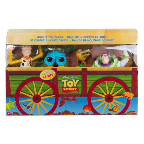 Baú de Brinquedos do Andy Toy Story - Mattel Comemorando o 25 aniversário de Toy Story da Disney e da Pixar, a Mattel trouxe uma super novidade: O Baú de Brinquedos do Andy Toy Story ! As crianças poderão recriar cenas favoritas da saga de filmes Toy Story com os quatro personagens clássicos juntos! Woody, Buzz Lightyear, Slinky Dog e Lenny estão prontos para aventuras por toda parte! Esses preciosos brinquedos do quarto de Andy vêm em escala de tamanho fiel ao filme, com designs genuínos e articulação para as maiores aventuras! Lenny também é um personagem do primeiro filme, fazendo dele um brinquedo extra especial para qualquer fã de Toy Story! Idade recomendada: Acima de 3 anos.