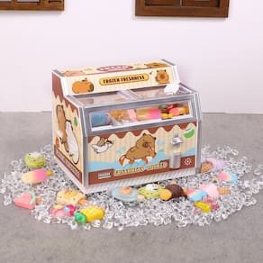 Material: Resina Peso: 260 g Tamanho: 11,5 cm x 8,3 cm x 9 cm Baú congelador de resina em miniatura com luz embutida, projetado como acessórios realistas de casa de bonecas para cenas de supermercados, cozinhas ou lojas de conveniência. Inclui 30 modelos variados de alimentos, cubos de gelo e conchas, oferecendo uma variedade detalhada para atividades de brinquedo de fingir e expositores de colecionadores. Perfeitamente dimensionado para configurações de 1/12 de brinquedos de mini house playhouse, aprimorando a narrativa criativa e a dramatização criativa para crianças e amadores. Lembrete de segurança: não é adequado para crianças pequenas, evite engolir ou ferir acidentalmente; este produto é apenas um modelo de brinquedo, não destinado ao uso humano real. Durável e finamente elaborado, fácil de colocar em cozinhas de casas de bonecas ou minislojas, adicionando atmosfera e funcionalidade realistas a ambientes em miniatura.