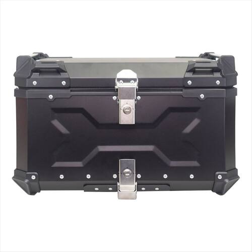 Baú de Moto Traseiro Tronos 65L-T-X em Alumínio - Base Universal - 65 Litros - Forro em Couro Sintético - Preto