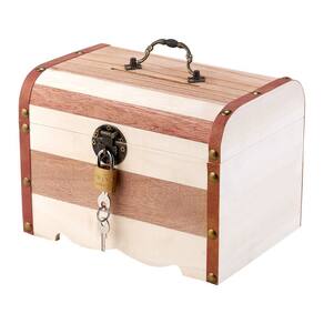 Tamanho: 17,5 x 13 x 12,3 cm Material: Madeira 1. Design listrado exclusivo: apresenta tons alternados de madeira natural e avermelhada com detalhes em latão e uma base curva, dando-lhe uma aparência decorativa artesanal. 2. Interior de alta capacidade: espaçoso o suficiente para armazenar uma grande quantidade de moedas, notas ou tesouros pessoais — perfeito para crianças que adoram guardar e organizar. 3. Sistema Secure Lock & Key: inclui uma trava de metal resistente com um cadeado e duas chaves para manter o conteúdo protegido — ensina às crianças o valor de economizar com maior segurança. 4. Construção durável em madeira maciça: feita de madeira de alta qualidade com cantos reforçados e uma alça de metal vintage, combinando força e apelo estético. 5. Caixa decorativa versátil: funciona muito bem como cofrinho e como solução elegante de armazenamento de mesa, adequada para quartos, mesas de estudo ou ocasiões para presentear.