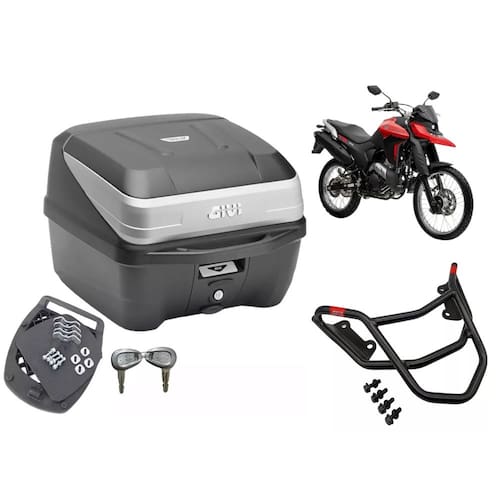 **** Suporte Traseiro / Bagageiro Givi.**** Fabricante: GIVI. Características: Produzidos em aço com características mecânicas diferenciadas. Possui solda 100% robotizada, sem interferência manual e pintura eletrostática para evitar o desgaste do produto. Capacidade de carga de 10 KG. O Bagageiro é de fácil instalação, sem adaptações. Acompanha parafusos para instalação no suporte do garupa. EAN: 7898429018422. Código do Fabricante: SR2141.