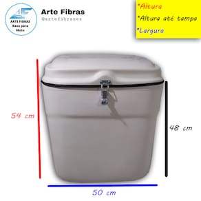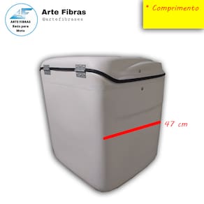 Baú para moto 115 Litros em Fibra de Vidro para utilização profissional, reforçado para trabalho, motoboy.Devemos considerar que a aquisição de um Baú não é gasto e sim um investimento, pois sabemos que a Moto, comparada a um Carro, tem altíssima economia financeira e uma melhor otimização no tempo de entrega, o que já é uma grande vantagem. Com seu grande espaço interno, evita a ida e volta, basta alocar os produtos com exatidão e trilhar uma rota de entrega.Fabricação Própria (Testado e Aprovado)Estamos no Mercado de Baús há mais de 10 anos, sabendo seus problemas e suas necessidades relacionadas ao assunto.Nossos Baús são universais, ou seja, cabem em qualquer moto! O que influencia é o SUPORTE, que deve ser compatível com o modelo/ano da moto.Porém nossa venda, NÃO ACOMPANHA SUPORTE!Por enquanto não trabalhamos... Mas em qualquer loja de peças de motos há para comprar, ou até mesmo pode-se pedir a um serralheiro para fabricar um pouco mais reforçado.CARACTERÍSTICAS:Produto fabricado em Fibra de Vidro;Alta durabilidade;Fácil recuperação e instalação;Prático, resistente e seguro;Paredes reforçadas;Fundo com reforço embutido na própria fibra;Acabamento interno com gel coat (resina pigmentada);Desenvolvido dentro das normas estabelecidas pelo CONTRAN.Suporta em torno de 60 Kg bem aconchegados ( Sem que a carga fique batendo dentro do baú )Medidas:54 altura x 50 largura x 47 comprimento Boca do Baú L-51 x C-47********************************Att.Equipe ARTE FIBRAS