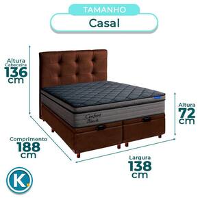 Baú Marrom + Cabeceira + Colchão Casal Confort Black Ortobom Conjunto Casal Colchão Confort Black + Cama Box Bau Marrom + Cabeceira O Colchão Confort Black Ortobom une tecnologia e conforto para um sono de qualidade. Conta com pillow top em espuma D28 selada, que garante maciez, resiliência e durabilidade. Sua estrutura interna em EPS de alta resistência oferece suporte firme e estável, mantendo a ergonomia ideal.