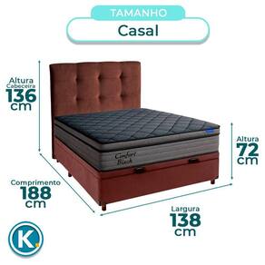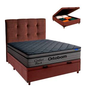 Baú Marrom + Cabeceira + Colchão Casal Confort Black Ortobom Conjunto Casal Colchão Confort Black + Cama Box Bau Marrom + Cabeceira O Colchão Confort Black Ortobom une tecnologia e conforto para um sono de qualidade. Conta com pillow top em espuma D28 selada, que garante maciez, resiliência e durabilidade. Sua estrutura interna em EPS de alta resistência oferece suporte firme e estável, mantendo a ergonomia ideal.