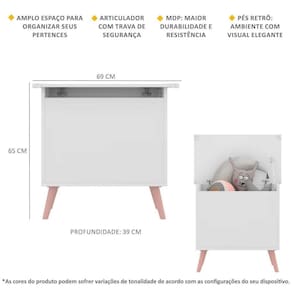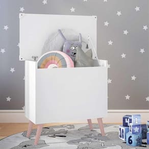 O Baú Organizador Caixa de Brinquedos Retrô Multimóveis é produzido em MDP com acabamento acetinado (cerca de 20% de brilho), que garante maior durabilidade, resistência e facilidade na limpeza. Com amplo espaço interno para organizar brinquedos ou outros pertences, ele suporta até 15kg e, para maior segurança, o articulador da tampa possui trava, para evitar acidentes. Os pés retrô, em polipropileno, dão um charme especial ao móvel deixando-o com um visual leve e permitindo você compor um ambiente com ar vintage e moderno ao mesmo tempo.