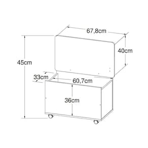 Aberta: Altura: 45cm | Largura: 67,8cm | Profundidade: 40cm