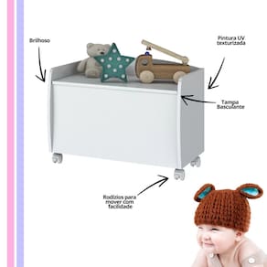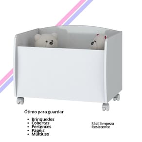 Baú para Brinquedos Multiuso com Rodinhas - Aquarela Branco - Facilidade e Praticidade na Hora de Organizar