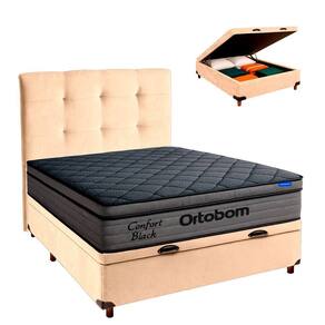 Baú Perola + Cabeceira + Colchão Casal Confort Black Ortobom Conjunto Casal Colchão Confort Black + Cama Box Bau Perola + Cabeceira O Colchão Confort Black Ortobom une tecnologia e conforto para um sono de qualidade. Conta com pillow top em espuma D28 selada, que garante maciez, resiliência e durabilidade. Sua estrutura interna em EPS de alta resistência oferece suporte firme e estável, mantendo a ergonomia ideal.
