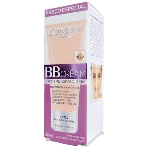 Base facial de uso diário com ação 5 em 1. Contém fator de proteção contra os raios UV (FPS 20). Minimiza a aparência de poros e ajuda a corrigir imperfeições. Livre de óleos, deixa a pele naturalmente iluminada e sem brilho. Cor: Média.
