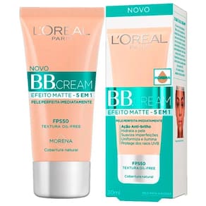 A Base Bb Cream L'oreal Matte 5 Em 1 possui uma textura com rápida absorção e toque seco, enriquecida com pigmentos minerais proporcionando uma leve cor com efeito natural. Nutre a pele durante todo o dia e contém filtro FPS 50 para uma alta proteção contra os raios UVB. Com toque seco imediato e ação anti brilho.