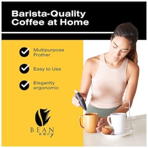 Multiuso Este versátil espumador de café mistura habilmente uma variedade de bebidas quentes e frias, incluindo shakes de proteína, cappuccinos, matcha lattes, macchiatos e bebidas em pó. Pode até bater seus ovos Aprovado por Baristas Transporte se para o seu café favorito todas as manhãs com o mini espumador de leite da Bean Envy que sempre fornecerá uma espuma rica e cremosa como os baristas profissionais. Versátil Apresentando um motor potente e robusto operado por bateria 19.000 rpm, nosso batedor de leite portátil fará a espuma desejada em apenas 15 segundos. Qualidade Com seu cabo ergonômico de borracha de silicone e varinha de aço inoxidável, este batedor de mão é construído para durar. Quando terminar de espumar, descanse o batedor de espuma em seu suporte de aço inoxidável elegante e resistente. Presente Não importa a ocasião, nossa varinha misturadora de café é o presente perfeito para o entusiasta do café em sua vida. Ótimo para viagens, camping, entretenimento, casamentos e aniversários Marca: Não Informado