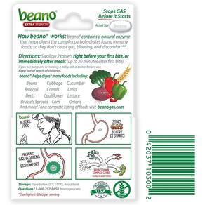 Os comprimidos podem ser mastigados ou engolidos com água.Tome Beano conforme as instruções ao comer alimentos que podem causar gases.