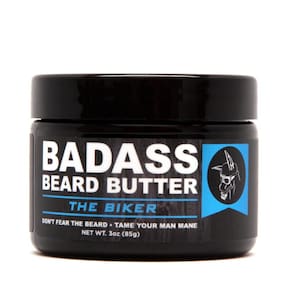 Manteiga de barba Badass Beard Care para homens — THE BIKER, 3 onças — Feita com ingredientes naturais para barba e bigode saudáveis, suavizantes e sem coceira