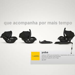 Compatibilidade com sistemas Travel System: Acompanha adaptador exclusivo para diversos carrinhos, pode ser acoplado aos carrinhos Kiddo Yuba, Savvy (Ref: 5240) e Sunny (Ref: 5236), tornando o passeio mais prático e versátil.