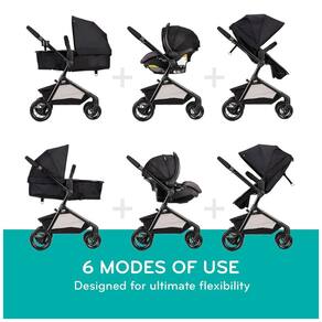 SISTEMA DE VIAGEM PARA INFANTE FLEXÍVEL O Evenflo Pivot Modular Travel System é uma combinação de assento de carro e carrinho de passeio com o assento de carro infantil voltado para trás SafeMax e a base SafeZone com barra anti rebote, infundida com acessórios adequados para pais e crianças. VERSÁTIL e LEVE Esta combinação de cadeirinha e carrinho de passeio apresenta uma estrutura modular com 6 modos. O modo reversível permite que seu bebê fique de frente para dentro ou para fora, enquanto o carrinho se transforma de uma estrutura de cadeirinha infantil para um assento de carrinho ou modo de carruagem com facilidade. TRANSFERÊNCIA FÁCIL DE CADEIRA DE CARRO INFANTIL Esta combinação de cadeirinha e carrinho de bebê foi projetada com uma base para ficar no carro que permite uma conexão rápida e segura da cadeirinha infantil do carrinho para o carro e vice versa. CARACTERÍSTICAS ADICIONAIS O Pivot Modular Travel System também inclui uma cesta de zenamento de grandes dimensões, uma base SafeZone com sistema de bloqueio de cinto para instalação correta e pneus cruiser grandes com piso e alça ergonômica para um passeio suave e sem esforço. Um grande dossel e uma barra de braço removível facilitam a transferência do bebê e melhoram o conforto Marca: Não Informado