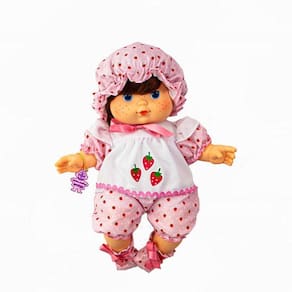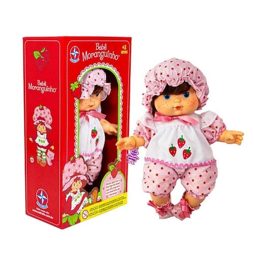 Faixa Etária: A partir de 3 anos | Contém na Embalagem: 01 Bebê Moranguinho | Material: Vinil e algodão | Selo Inmetro: 009 914 / 2023 | Personagem (CHARACTER): Moranguinho | É colecionável (IS_COLLECTIBLE): Sim | batteries_required: Não | external_testing_certification: Não | included_components: Boneca | is_assembly_required: Não | item_dimensions: 22 x 12 x 35 | manufacturer: Estrela | manufacturer_minimum_age: 38 | number_of_boxes: 1 | number_of_items: 1 | number_of_players: 1 | part_number: Não se aplica | power_source_type: Não se aplica | safety_warning: Não recomendado para menores de 3 anos | target_audience_keyword: Menina | bullet_point#0: Perfume de morango | bullet_point#1: Cabelos cor de cobre | bullet_point#2: Corpo de vinil