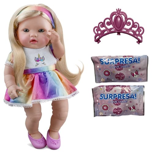 Sinta a experiência de ter um bebê de verdade com toque delicado e cheirinho de neném. Simplesmente um encanto de Boneca. A Bebê Reborn é feita em vinil especial e pano com cor de bebê recém-nascido. Rica em detalhes, como dobrinhas da pele e costura, possui o peso ideal para brincar dando a sensação de carregar um bebê de verdade, e ainda vem com duas surpresas para divertir a sua filhinha!