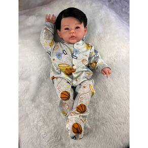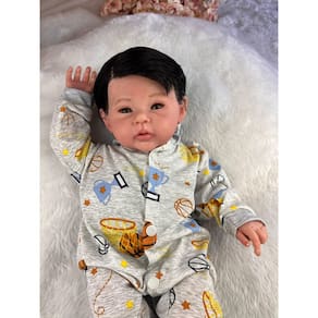 Nossos bebês são confeccionados com o mais alto padrão de qualidade em vinil siliconado e tecido macio. Os olhos castanhos brilhantes garantem uma aparência encantadora e realista.