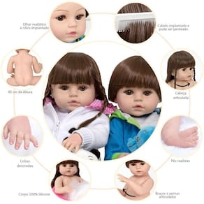 Bonecos Bebê Reborn Gêmeos são o sonho das meninas Produzidos 100% em vinil siliconado, esses bonecos podem sentar, deitar e fazer tudo que a sua imaginação deixar. Com seus lindos olhos e detalhes realistas eles são encantadores e apaixonantes. Sua criança merece a melhor qualidade de bebê reborn