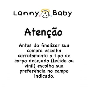 ESCOLHA DO CORPO: Bebê com corpo em vinil: pode dar banho. Ela possui o corpo e os membros em vinil.