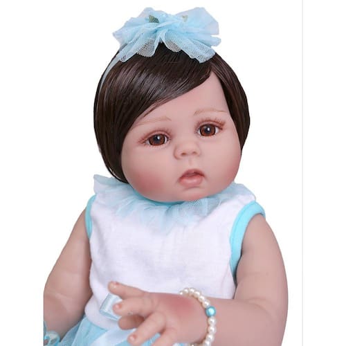 1 Boneca de 47cm 1 Jogo de Roupas (idem as fotos) 1 Chupeta magnética para bonecas reborn 1 Ursinho de Pelúcia 1 Tiara de Cabelo 1 Mamadeira 1 Brinde extra (Certificado de nascimento)* Produto não recomendado para crianças com menos de 3 anos de idade.