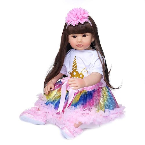 A Boneca Bebê Reborn Karen é a boneca perfeita que toda criança gostaria de ganhar. Realize o sonho da sua filha! Deixe que ela também se sinta mãe. Tamanho: 60cm Peso: 1,00kg Olhos abertos 100% artesanal, com pintura feito a mão Produto feito a mão, podendo ter leves variações no tamanho (entre 58cm a 62cm) , quanto no peso, entre 800g a 1,2kg Material: Corpo de Pano e membros de Silicone macio. Estrutura: Cabeça, pernas e braços são de silicone e o corpo é de pano com algodão macio, não tóxico. Os membros da boneca são ativos, os braços e pernas podem se movimentar. Conteúdo da Embalagem: 1 Boneca de 60cm 1 Jogo de Roupas (idem as fotos) 1 Par de Sapatos 1 Mamadeira 1 Tiara de Cabelo 1 Brinde extra (Certificado de nascimento) * Produto não recomendado para crianças com menos de 3 anos de idade. * Certificação Inmetro: Certificação de Conformidade: NM 300-1; 300-2; 300-3 - CE-BRI/BRICS 5849/2020 OCP0098 (organismos De Certificação De Produtos)
